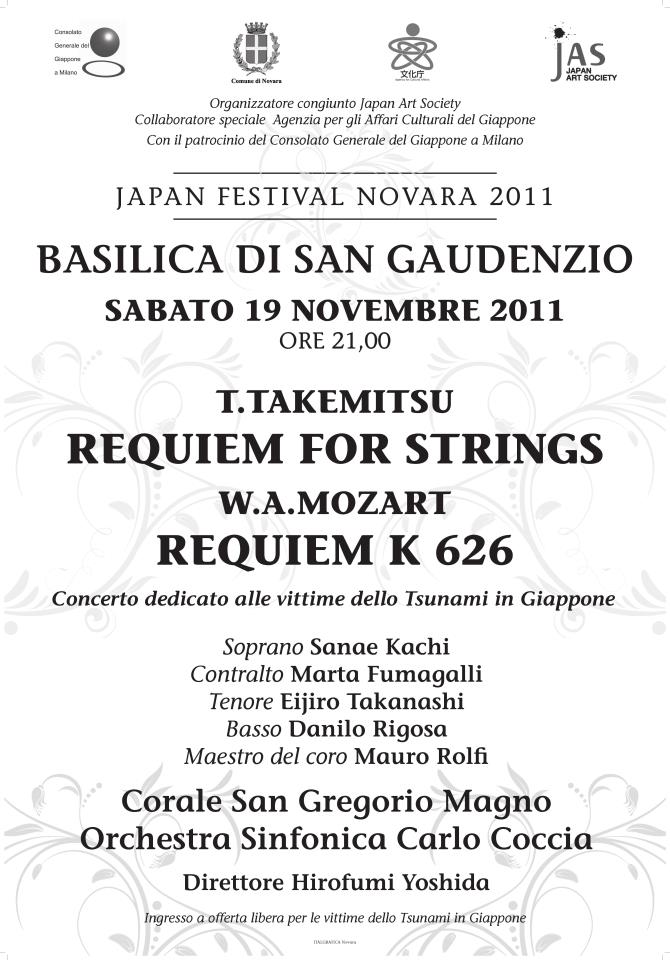 パンフレットの画像を掲載しましたが、そこにもある通り、ノヴァーラで行われていたジャパン・フェスティバルの一環としてのコンサートだったようで、武満徹氏の弦楽のためのレクイエムと併せてのチャリティコンサートという形でした。
