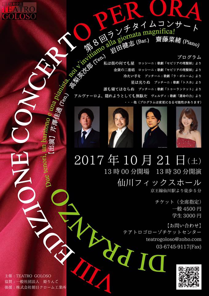 テノール芹澤さんにお招きいただき、仙川フィックスホールでのコンサートに出演いたします。