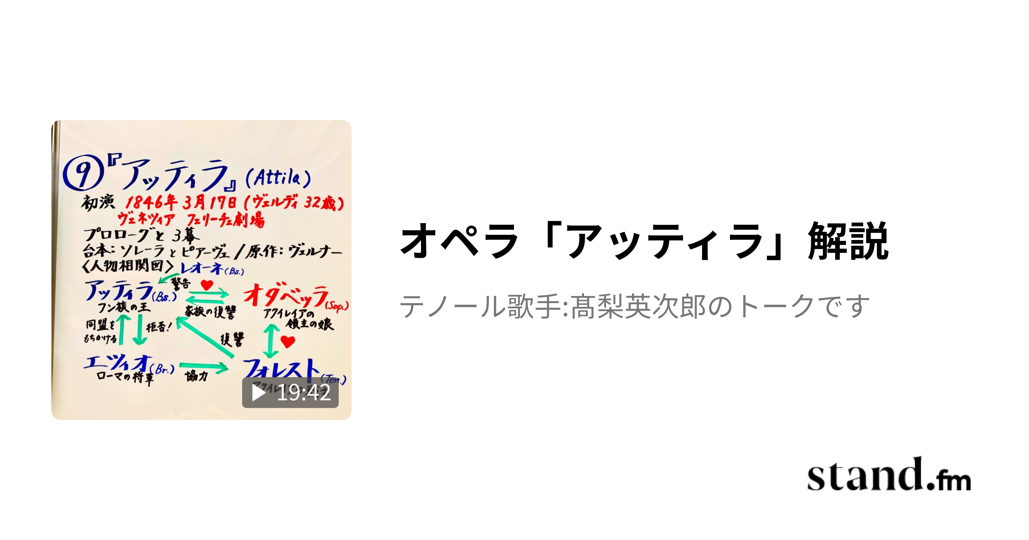 オペラ「アッティラ」解説 - テノール歌手:髙梨英次郎のトークです | stand.fm