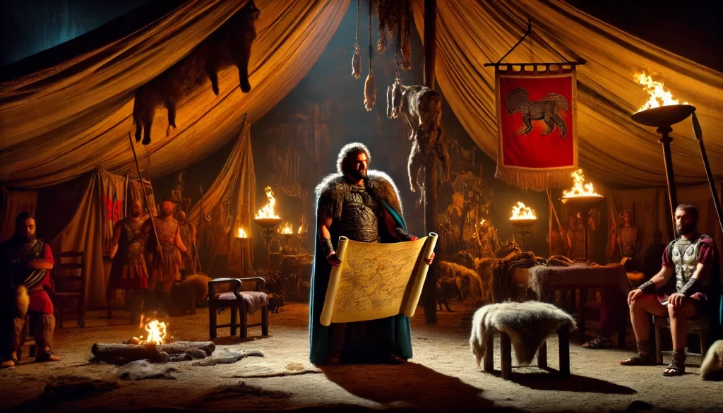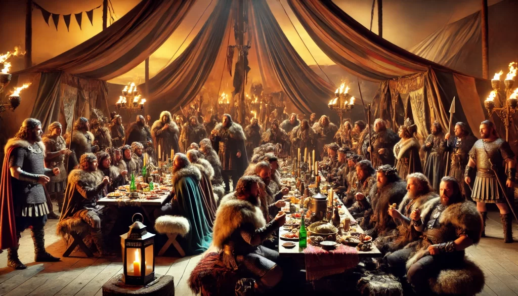 アッティラの陣営で、休戦を祝う宴が催されています。